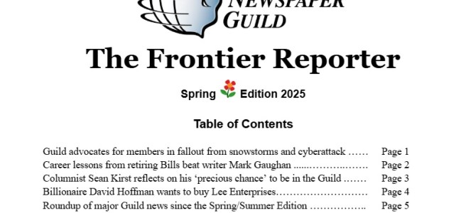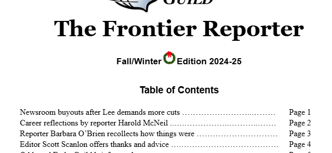 This special fall/winter 2024-25 edition of the Guild's Frontier Reporter newsletter is our biggest yet and packed with new features. It covers five months of news from August through December of 2024, when so much has happened. Not sure what's going on with your union or our parent company, Lee Enterprises? You'll won't find a … Continue reading A must-read special edition of the fall/winter Frontier Reporter